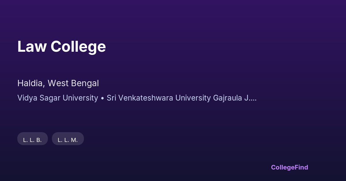Law College, located in Haldia, West Bengal, was established in 2002 and operates as a private unaided institution. It is affiliated with Vidya Sagar University, ensuring that its curriculum aligns with the university's academic standards. The college focuses on providing legal education through a structured program suited for students aiming to build a career in law. The campus covers an area of 3.57 acres, offering adequate space for classrooms, administrative offices, and student facilities. Being an affiliated college, it follows the guidelines set by the university while maintaining its management independently. While specific placement data and average package information are not available, the college's connection with Vidya Sagar University provides students with access to academic resources and potential networking opportunities in the legal field. This institution is a practical choice for those seeking a focused legal education in the Haldia region.