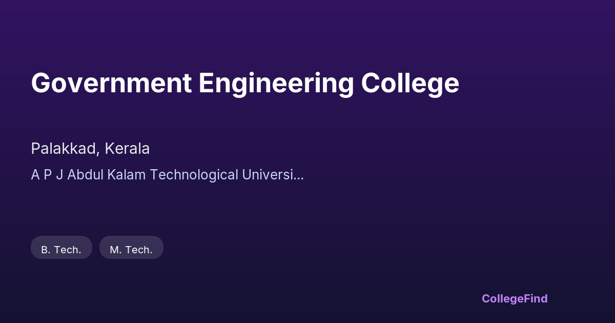Government Engineering College, Palakkad, established in 1999, is an affiliated institution under APJ Abdul Kalam Technological University. Managed by the state government, the college is situated on a campus spanning 32.33 acres. The campus provides a conducive environment for academic and extracurricular activities, with well-maintained facilities and green spaces that offer a calm atmosphere for students. Infrastructure includes modern classrooms, laboratories equipped with up-to-date technology, and dedicated spaces for research and innovation. The college prioritizes creating a supportive learning environment, with resources that meet the needs of its engineering programs. Its location in Palakkad allows for a balanced mix of academic focus and access to the natural surroundings of Kerala. Overall, the campus is designed to support the technical education and personal growth of its students.