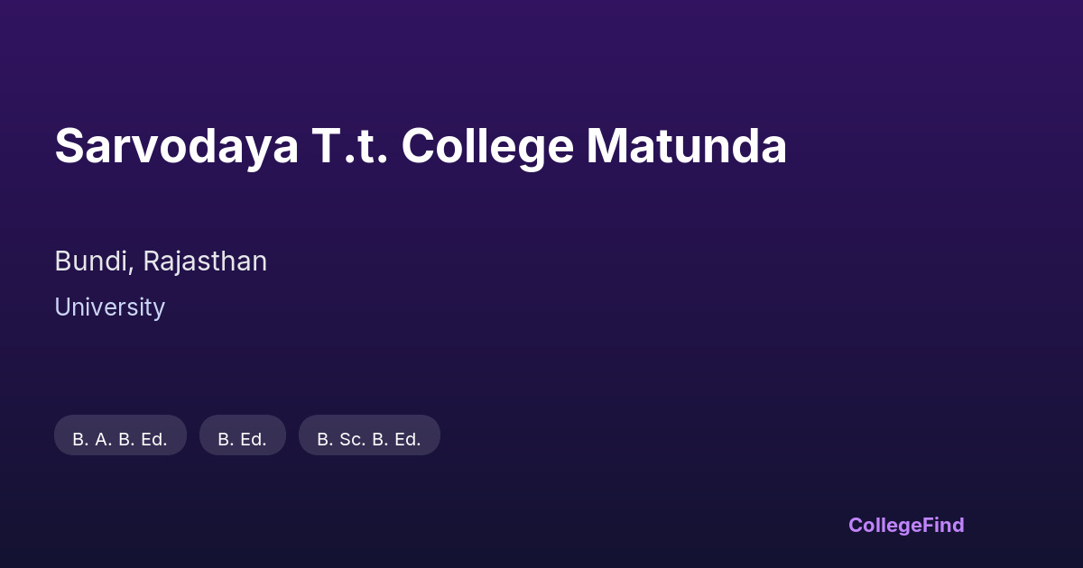 Sarvodaya T.T. College Matunda Hostel, Fees & Accommodation Details | CollegeFind