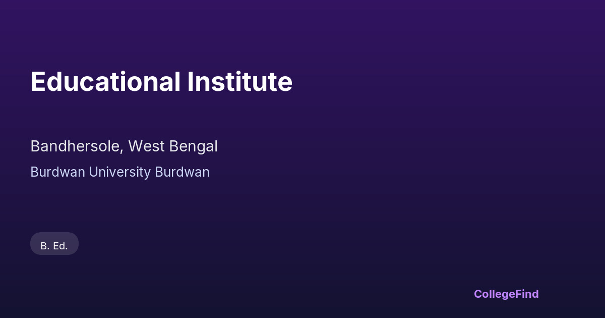 Educational Institute, located in Bandhersole, West Bengal, was established in 2016. As an affiliated college under Burdwan University, Burdwan, it offers academic programs that adhere to the curriculum and standards set by the university. The institute operates under local body management, ensuring a connection with the community it serves. With a campus area of 3.63 acres, the college provides a dedicated space for learning and development. The affiliation with Burdwan University allows students to benefit from a structured academic environment and recognized degrees, supporting their educational and professional goals.