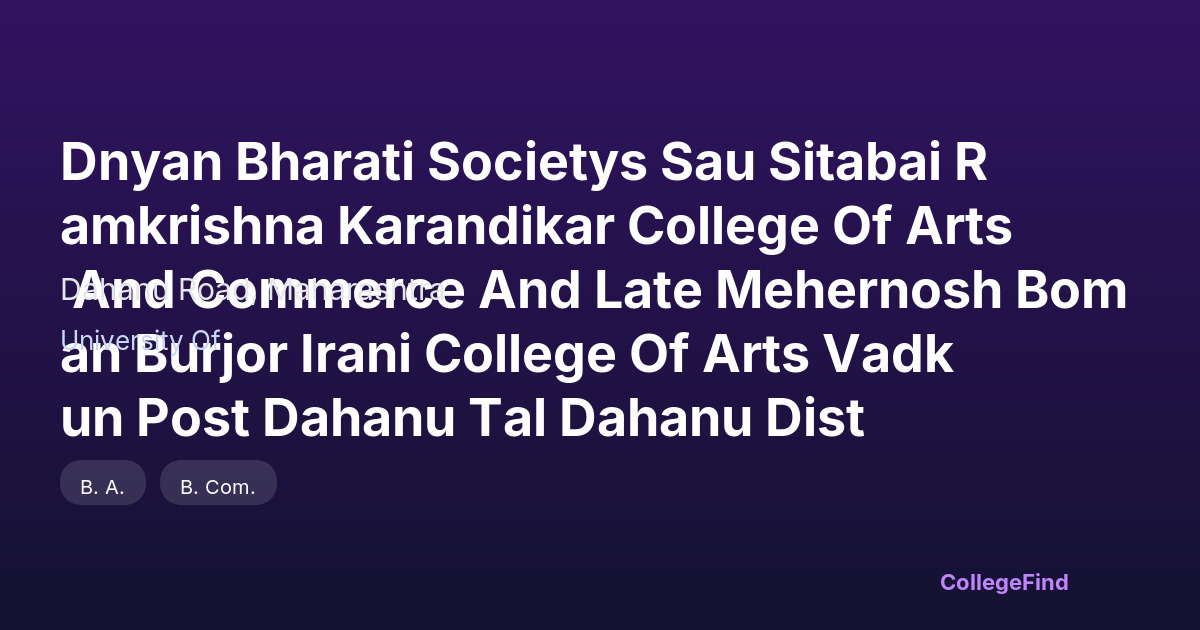 Dnyan Bharati Societys Sau Sitabai Ramkrishna Karandikar College Of Arts And Commerce And Late Mehernosh Boman Burjor Irani College Of Arts Vadkun Post Dahanu Tal Dahanu Dist