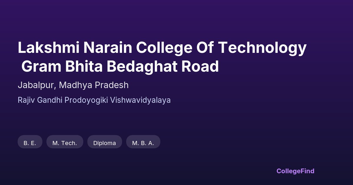 Lakshmi Narain College Of Technology Gram Bhita Bedaghat Road
