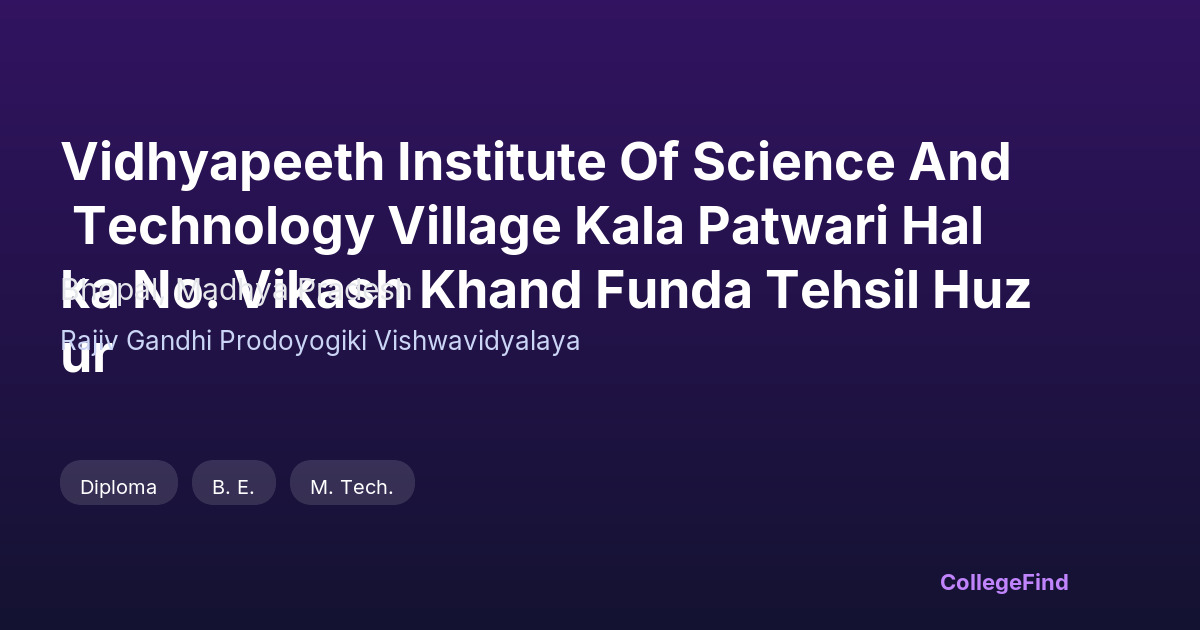 Vidhyapeeth Institute Of Science And Technology Village Kala Patwari Halka No. Vikash Khand Funda Tehsil Huzur