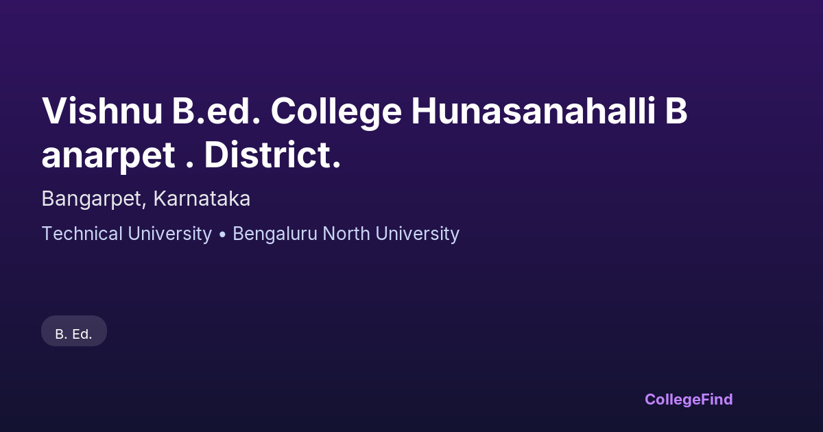 Vishnu B.Ed. College Hunasanahalli Banarpet . District.