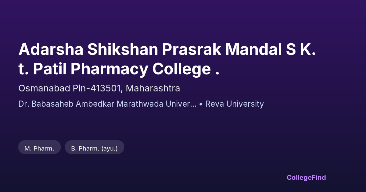 Adarsha Shikshan Prasrak Mandal S K.T. Patil Pharmacy College .