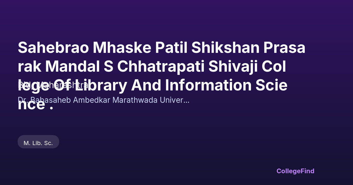Sahebrao Mhaske Patil Shikshan Prasarak Mandal S Chhatrapati Shivaji College Of Library And Information Science .