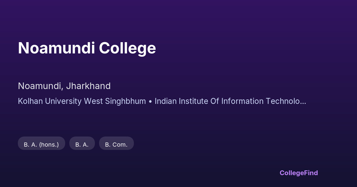 Noamundi College, established in 2010, is located in Noamundi, Jharkhand. The college operates under the affiliation of Kolhan University, West Singhbhum, and is managed by the local body. It functions as an affiliated institution offering various undergraduate programs. The campus spans an area of 11.62 acres, providing a structured environment for academic activities. The college focuses on delivering quality education to students in the region, aligning its curriculum with the guidelines set by the university. While specific placement statistics and average salary packages are not available, Noamundi College aims to support the academic and professional growth of its students through consistent educational efforts and community engagement.