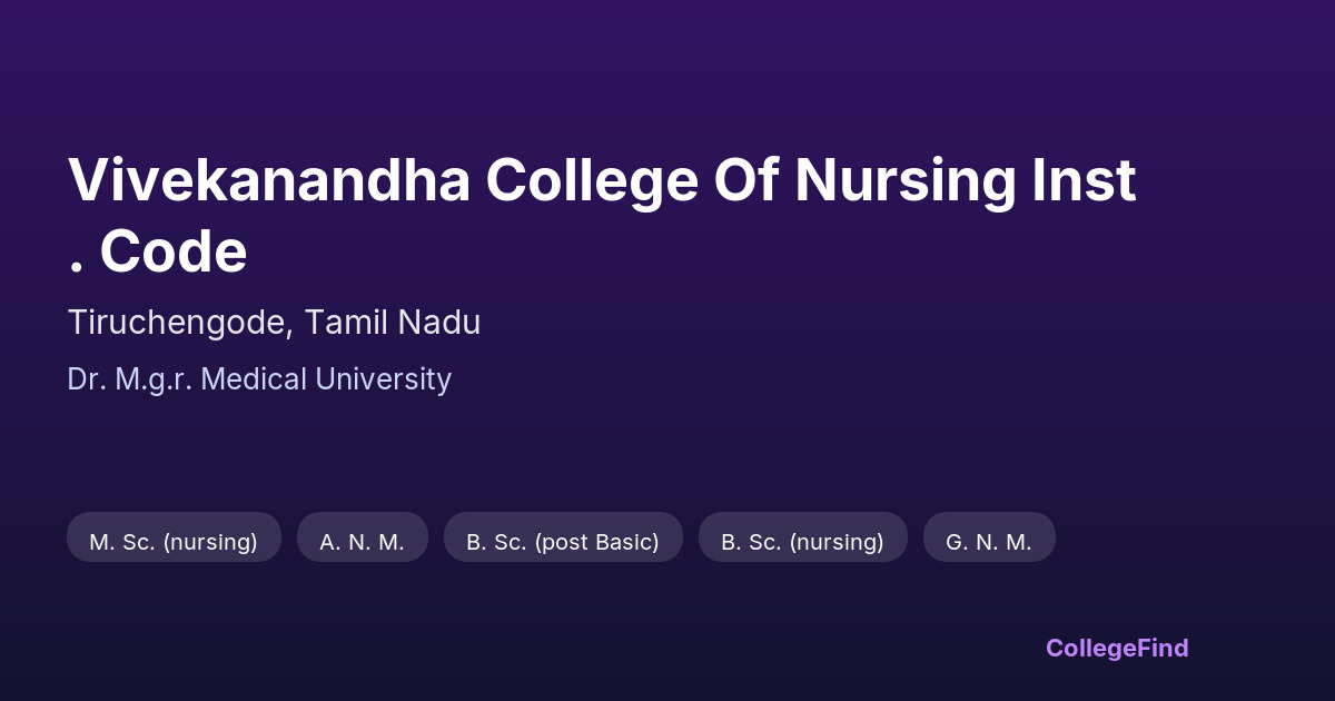 Vivekanandha College Of Nursing Inst. Code