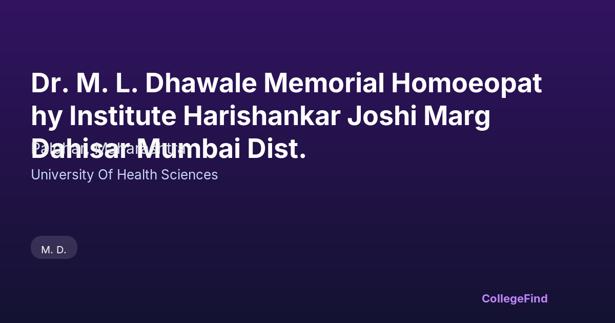 Dr. M. L. Dhawale Memorial Homoeopathy Institute Harishankar Joshi Marg Dahisar Mumbai Dist.