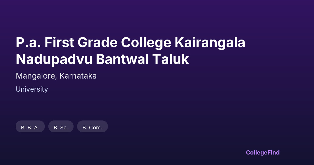 P.A. First Grade College Kairangala Nadupadvu Bantwal Taluk