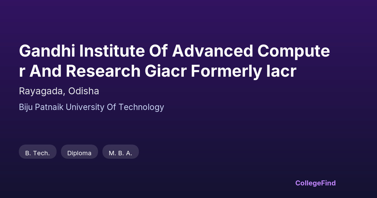 Gandhi Institute Of Advanced Computer And Research Giacr Formerly Iacr