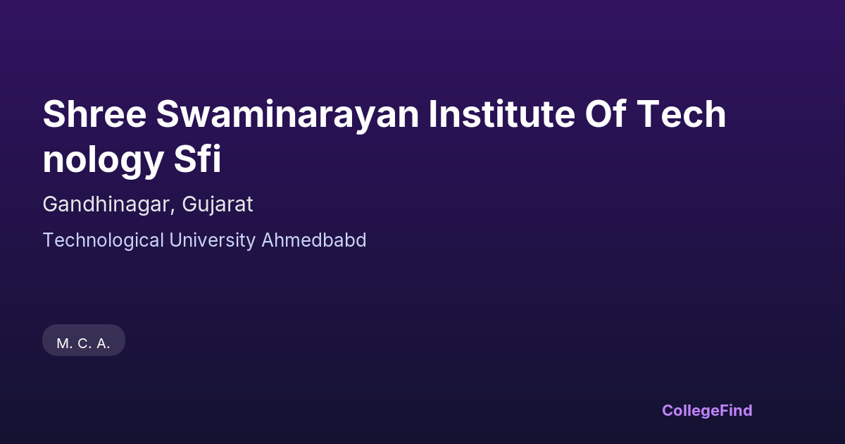 Shree Swaminarayan Institute of Technology (SFI), located in Gandhinagar, Gujarat, was established in 2001. As an affiliated college under the Technological University Ahmedabad, SFI offers a range of technical programs designed to prepare students for careers in engineering and technology. The institution operates as a private unaided management college, focusing on providing quality education in a structured academic environment. The campus spans approximately 4.75 acres, offering adequate facilities to support students' learning and development. With its affiliation to a well-recognized technological university, the institute follows a curriculum that aligns with current industry standards, ensuring that students receive relevant and comprehensive technical education. SFI emphasizes practical knowledge alongside theoretical learning to equip students with the skills required to meet the evolving demands of the engineering sector.