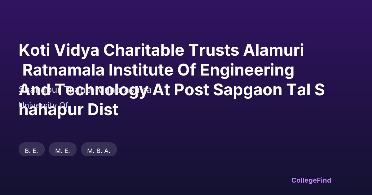 Koti Vidya Charitable Trusts Alamuri Ratnamala Institute Of Engineering And Technology At Post Sapgaon Tal Shahapur Dist