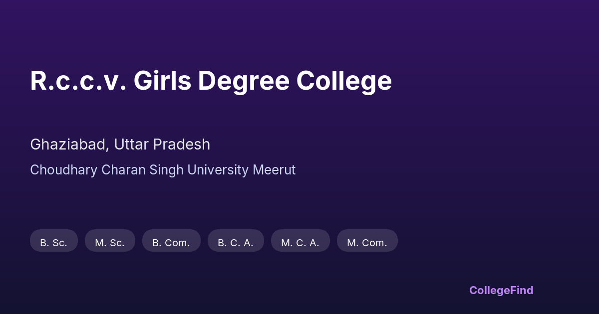 R.C.C.V. Girls Degree College, located in Ghaziabad, Uttar Pradesh, was established in 1994. It operates as a private unaided institution and is affiliated with Choudhary Charan Singh University, Meerut. The college offers a range of undergraduate programs focused on empowering women through education. Situated on a campus spanning 1.8 acres, it provides a conducive environment for academic growth. The college emphasizes creating opportunities for its students through various academic and extracurricular activities, aligning with its goal to support personal and professional development. While specific placement statistics and average package details are not available, the institution maintains a steady commitment to equipping students with relevant skills and knowledge. R.C.C.V. Girls Degree College aims to contribute to the educational landscape of Ghaziabad by fostering a focused and supportive learning atmosphere.