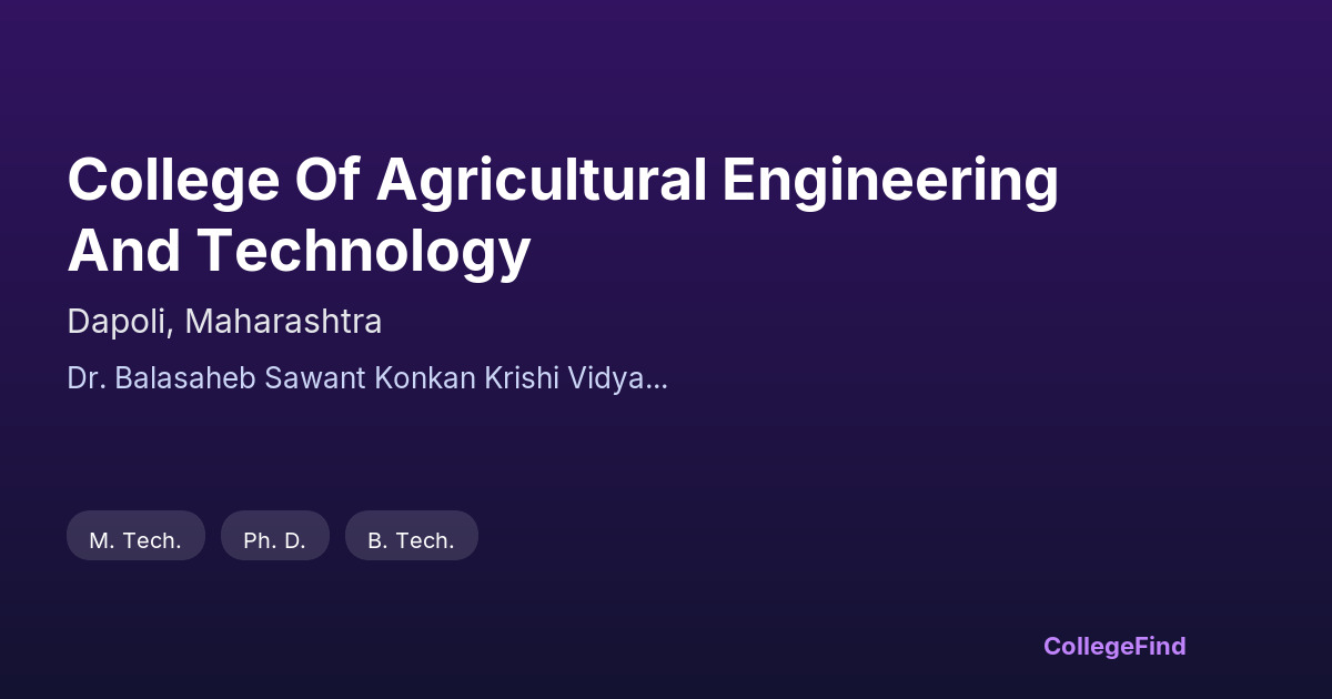 Affiliated to Dr. Balasaheb Sawant Konkan Krishi Vidyaapeeth Former Konkan Krishi Vidyapeeth