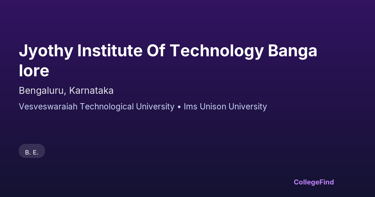 Jyothy Institute Of Technology Bangalore