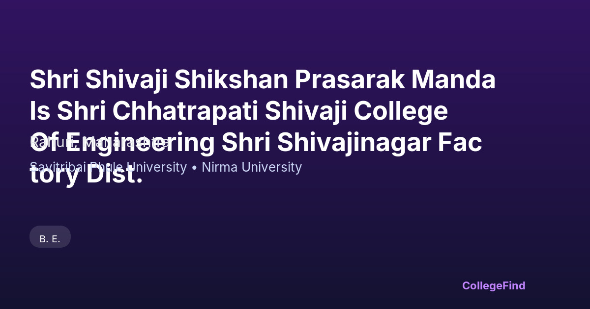 Shri Shivaji Shikshan Prasarak Mandals Shri Chhatrapati Shivaji College Of Engineering Shri Shivajinagar Factory Dist.