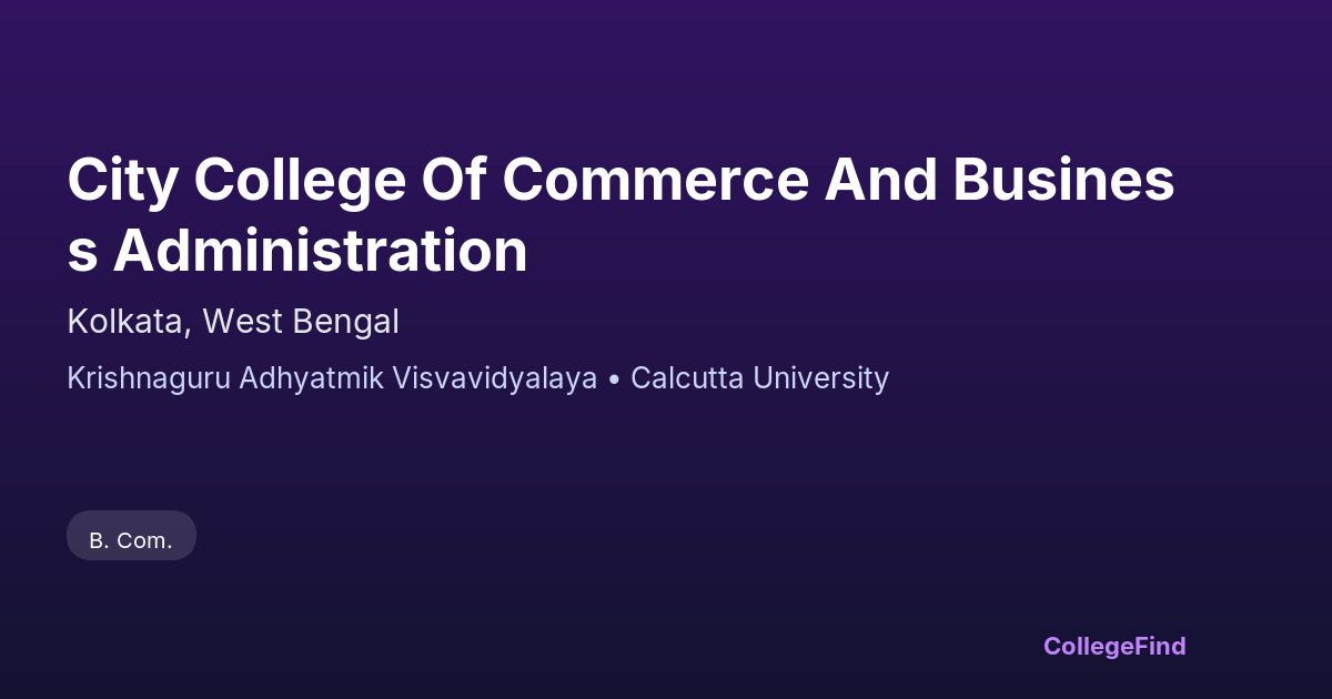 City College of Commerce and Business Administration, located in Kolkata, West Bengal, was established in 1939. Affiliated with Krishnaguru Adhyatmik Visvavidyalaya, the college operates under local body management. The institution focuses on providing a solid foundation in commerce and business studies, preparing students for professional success. While specific placement percentages and average salary packages are not provided, the college emphasizes practical learning and career readiness. The campus spans a compact area of approximately 0.35 acres, creating an environment conducive to focused academic growth. Students benefit from the college’s affiliation and local connections, which help in exploring career opportunities in commerce and related fields.