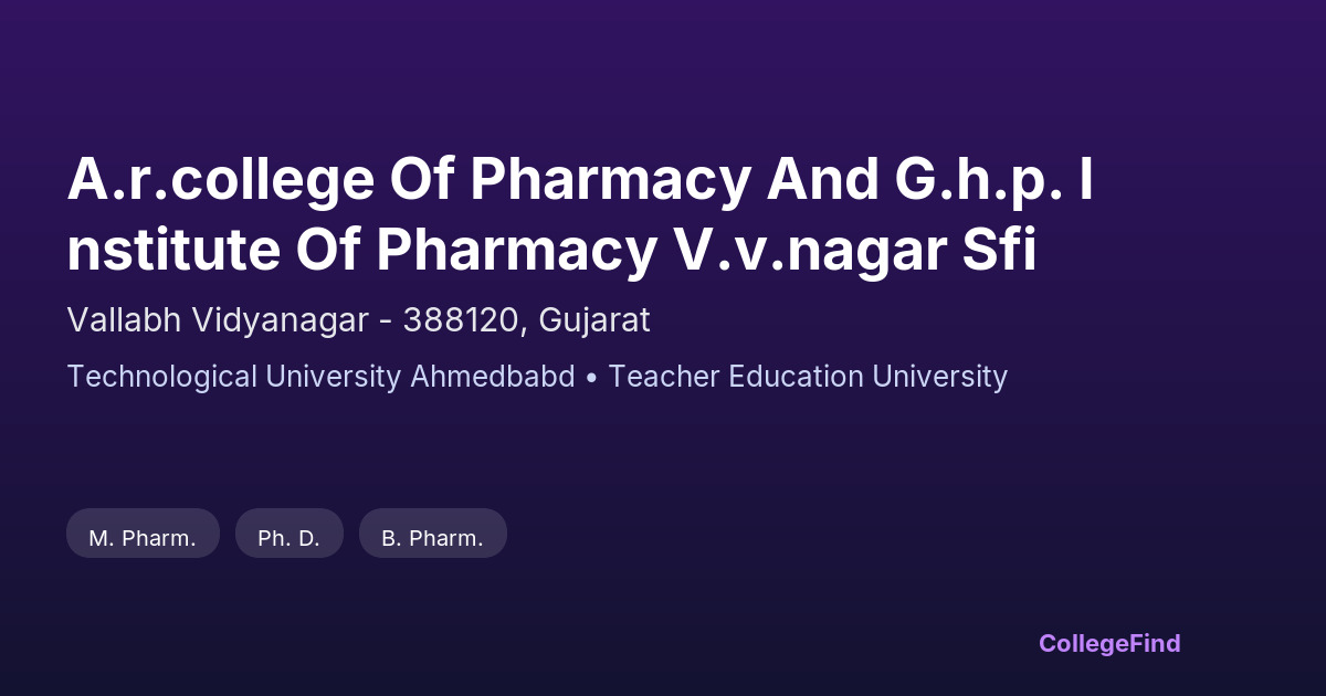 A.R.College Of Pharmacy And G.H.P. Institute Of Pharmacy V.V.Nagar Sfi