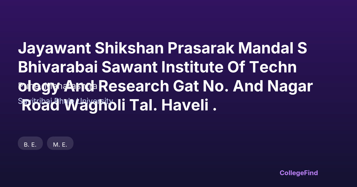 Jayawant Shikshan Prasarak Mandal S Bhivarabai Sawant Institute Of Technology And Research Gat No. And Nagar Road Wagholi Tal. Haveli .