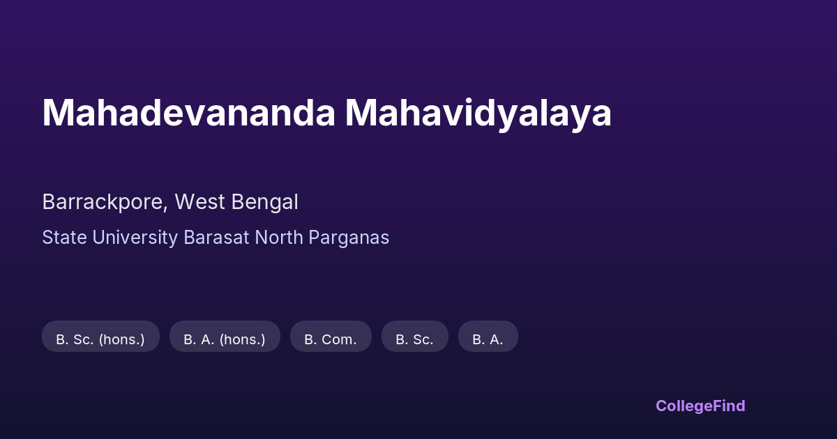 Mahadevananda Mahavidyalaya, located in Barrackpore, West Bengal, is an affiliated college under the State University Barasat North Parganas. Established in 1968, the college has a long-standing history of providing education within the state's government framework. The campus is relatively compact, covering an area of about 0.11734 square kilometers, which creates an intimate learning environment. As a student here, I appreciate the balance between academics and campus life, fostered by the close-knit community and dedicated faculty. While the college doesn’t have specific placement statistics available, it offers a variety of courses aligned with the university’s curriculum. Its affiliation with the state university ensures that the degree holds value within the region. Overall, Mahadevananda Mahavidyalaya is a solid choice for students looking for quality education in Barrackpore without the distractions of a sprawling campus.