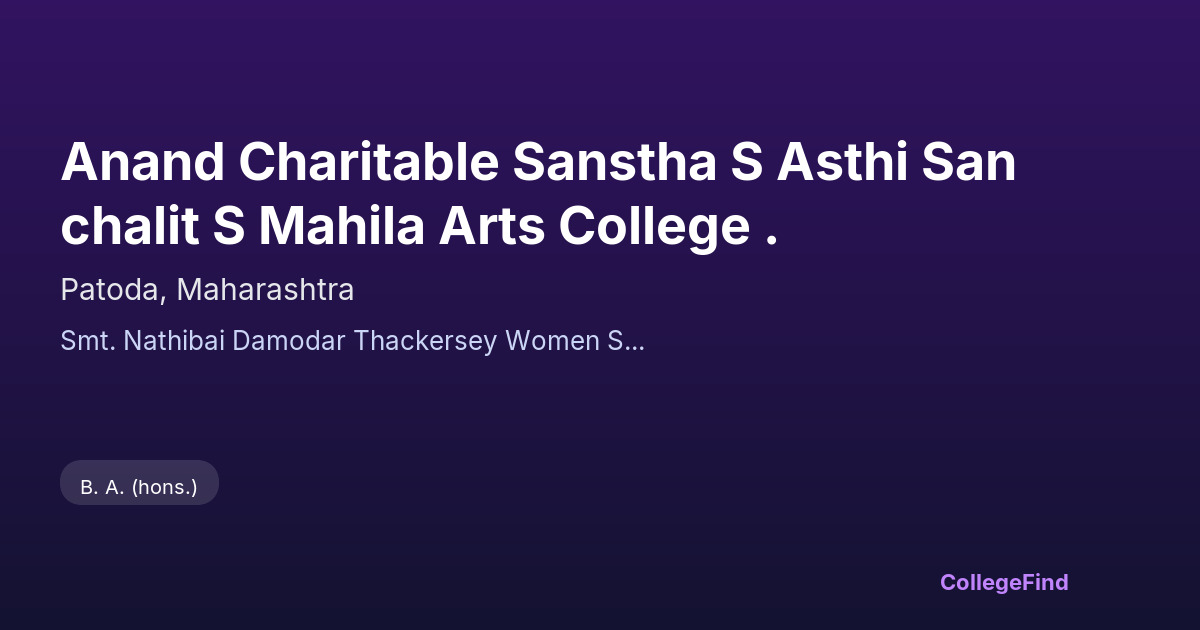No hostels available for anand charitable sanstha s asthi sanchalit s mahila arts college ..