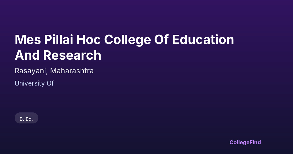 Mes Pillai Hoc College Of Education And Research
