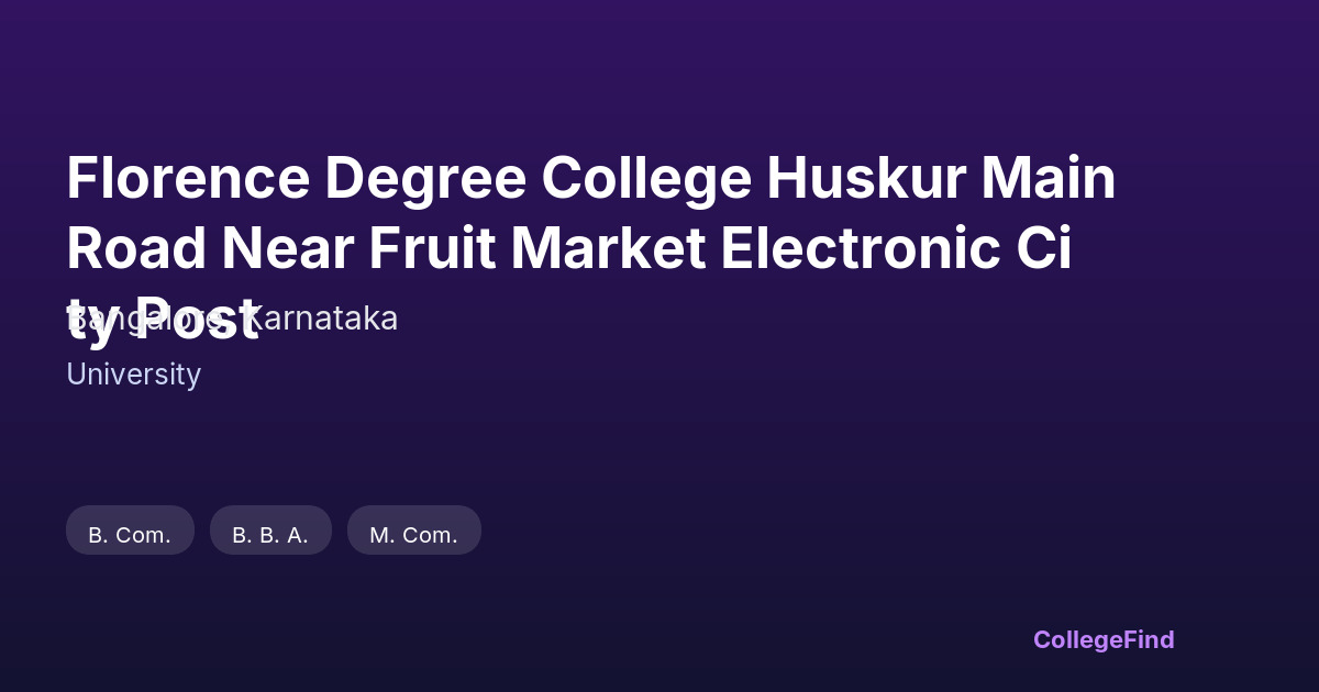 Florence Degree College Huskur Main Road Near Fruit Market Electronic City Post