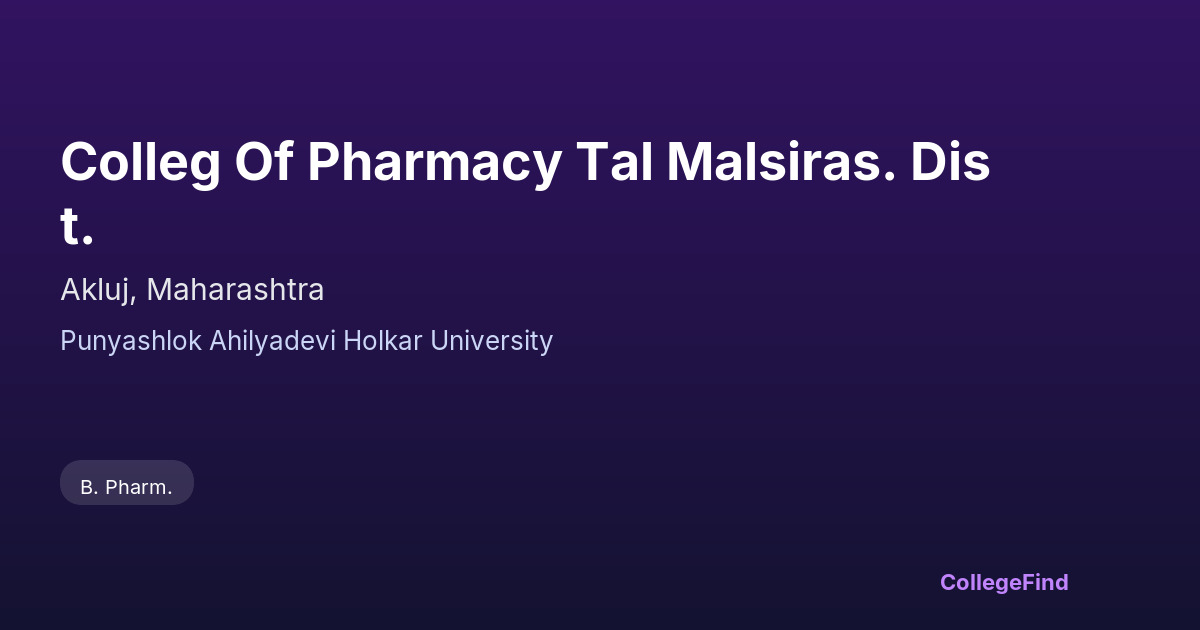 Colleg Of Pharmacy Tal Malsiras. Dist.