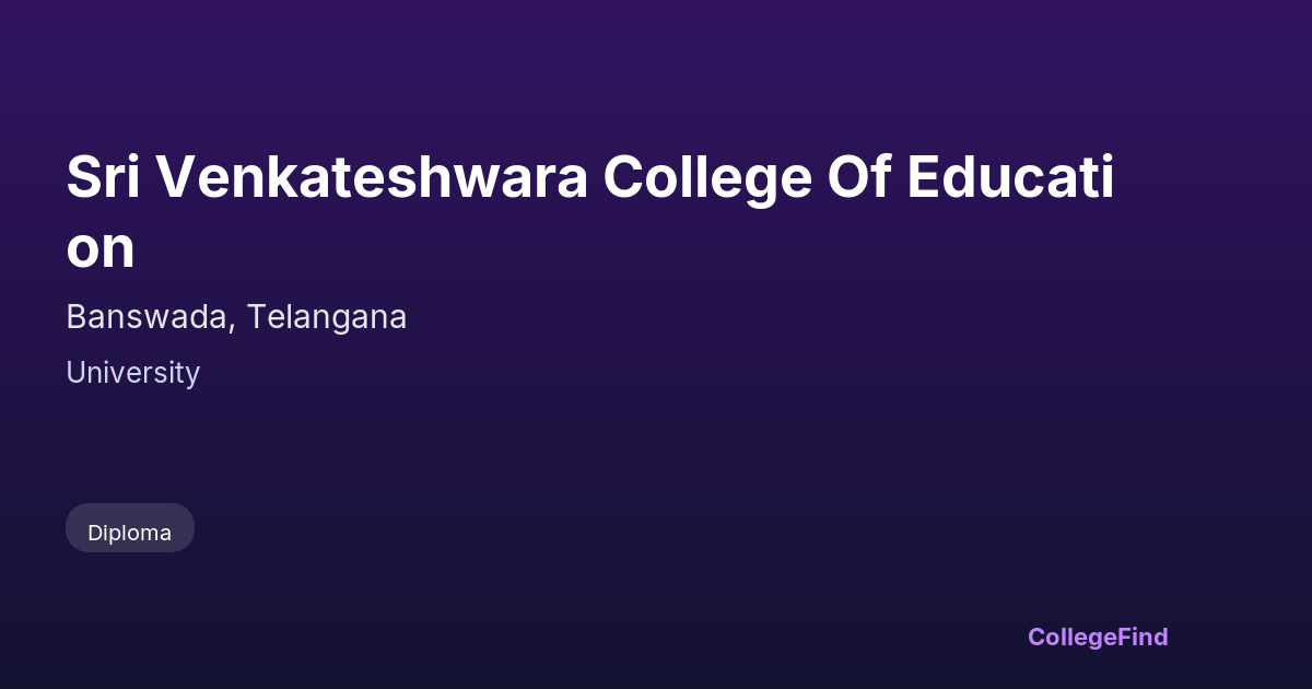 Sri Venkateshwara College of Education, located in Banswada, Telangana, was established in 2016. It operates as a private unaided institution and is affiliated with a recognized university. The college offers education programs aimed at preparing students for careers in teaching and education. The campus spans approximately 1.16 acres, providing facilities to support academic activities and student development. As an affiliated college, it follows the curriculum and guidelines set by its university affiliation, ensuring standardized education and assessment. While detailed placement statistics and average salary packages are not available, the college focuses on equipping students with the necessary skills and knowledge to succeed in the education sector.