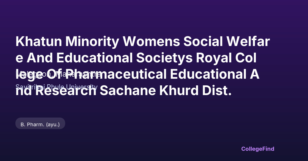 Khatun Minority Womens Social Welfare and Educational Society's Royal College of Pharmaceutical Educational and Research, located in Malegaon, Maharashtra, was established in 2006. This private un-aided institution operates as an affiliated college under Savitribai Phule University. The college focuses on pharmaceutical education and research, providing students with academic programs designed to prepare them for careers in the pharmaceutical field. The campus spans approximately 3 acres, offering the necessary infrastructure and facilities to support learning and research activities. Being part of a minority women's social welfare society, the college emphasizes inclusive education and aims to empower women through quality pharmaceutical education.