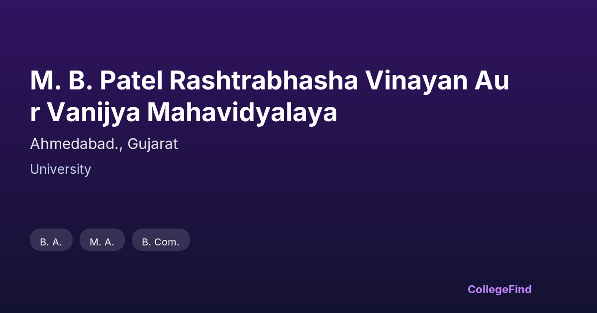 No hostels available for m. b. patel rashtrabhasha vinayan aur vanijya mahavidyalaya.