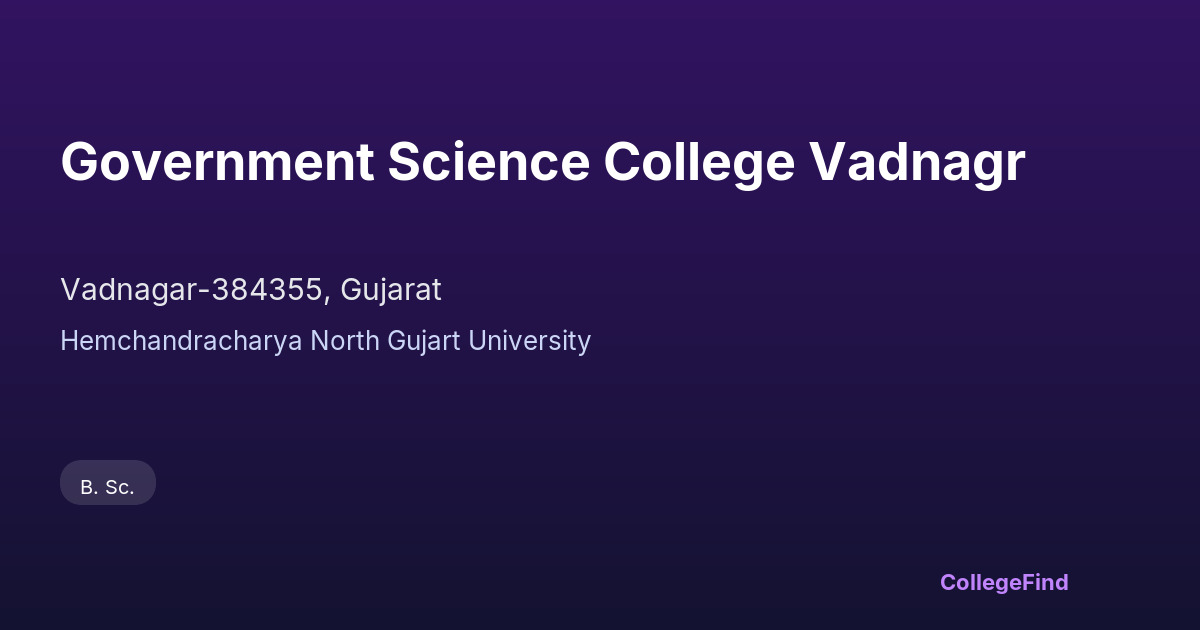 Government Science College Vadnagar, established in 2012, is an affiliated college under Hemchandracharya North Gujarat University. Located in Vadnagar, Gujarat, the college is managed by the state government, ensuring it follows standardized protocols and regulations common among public institutions in the region. With a campus area of 7.41 acres, it provides a compact environment for science students to focus on their academic pursuits. Compared to other affiliated colleges in Gujarat, Government Science College Vadnagar offers a focused curriculum aligned with its university’s guidelines. While detailed placement statistics and average salary packages are not publicly available, the college’s affiliation with a recognized university adds credibility to its programs. Its location in Vadnagar makes it accessible to students from nearby towns, though it may have fewer resources and industry connections than colleges in larger cities. Overall, it serves as a practical option for students seeking affordable science education within the state government framework.