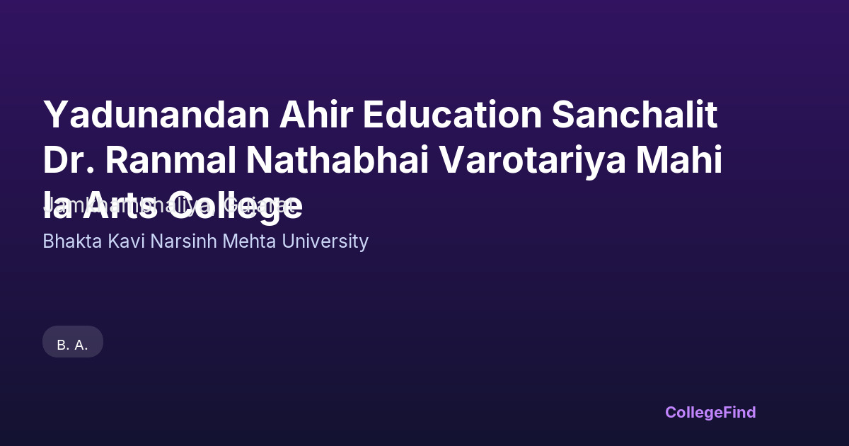 Yadunandan Ahir Education Sanchalit Dr. Ranmal Nathabhai Varotariya Mahila Arts College