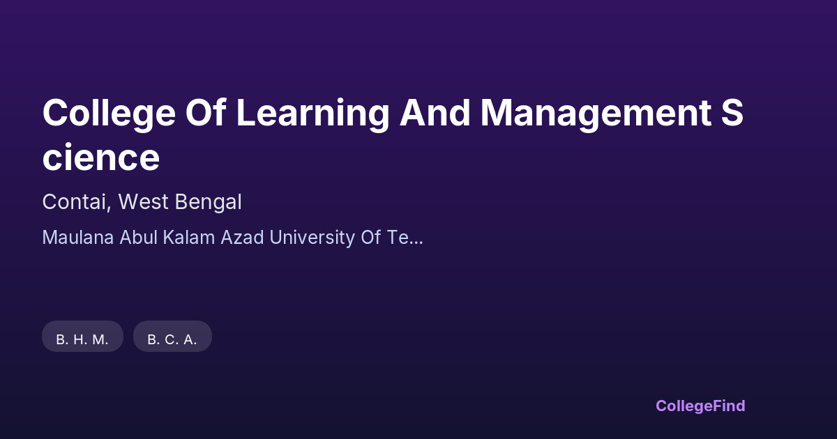 The College of Learning and Management Science, located in Contai, West Bengal, has been a part of my academic journey since its establishment in 2013. As an affiliated private aided college under Maulana Abul Kalam Azad University of Technology, it offers a focused environment for students pursuing management and related fields. The campus is compact, covering 0.25 acres, which creates a close-knit community feel among students and faculty. While the college is relatively new, the curriculum aligns well with university standards, providing a solid foundation in learning and management sciences. Although detailed information on placement rates and average packages isn’t readily available, the college emphasizes building practical skills and industry awareness through coursework and projects. Overall, it’s been a supportive place to study, especially for those looking for personalized attention and a straightforward path into management education.