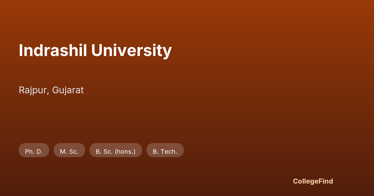 Located in the city of Rajpur in Gujarat, Indrashil University is a state private institution established in 2017. Since its inception, the university has focused on providing a focused academic environment tailored to meet contemporary educational needs in various fields. The institution covers a campus area of approximately 13.48 acres, offering a compact yet well-organized space for students and faculty. This setting supports an atmosphere conducive to learning and personal development, balancing academic activities with extracurricular opportunities. As a relatively young university, it aims to build its reputation through consistent academic offerings and practical engagement rather than legacy or tradition. The management oversees academic programs and campus operations with an emphasis on aligning educational outcomes to the evolving demands of industry and society, although specific details about the management structure have not been prominently disclosed. While information about placement statistics and average salary packages is not readily available, prospective students are encouraged to inquire directly with the university’s career services or placement cell. These departments typically provide guidance on internship opportunities and employment support, which are crucial for career planning and post-graduation transition. The educational model at Indrashil integrates theoretical knowledge with practical skills, suitable for students seeking a comprehensive yet pragmatic approach to higher education. The campus infrastructure is designed to facilitate this with classrooms, labs, and resource centers, though potential students should consider visiting or requesting detailed facility descriptions to understand the scope and quality of infrastructure available. Situated in Gujarat, the university benefits from the state’s growing economic and industrial landscape. This geographic positioning offers students potential exposure to various sectors through industry interactions and possibly internships, enhancing their educational experience with real-world context. In summary, the university presents itself as a growing institution focused on meeting contemporary educational demands within a manageable campus environment. Its offerings might particularly appeal to those who prefer a newer institution with a practical approach to learning and a location in Gujarat’s educational sphere. Prospective students and parents should seek further specific information about academic programs, faculty qualifications, and placement support to make well-informed decisions aligned with their professional and academic goals.
